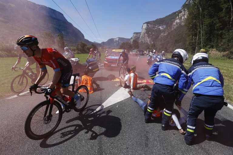 Manifestantes bloquearon ruta del Tour de Francia: Carrera se paralizó por 15 minutos
