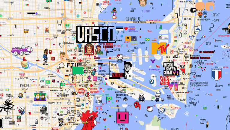 El mapa colaborativo más grande de internet muestra una versión pixelada de Santiago plagada de escudos, animé, memes y frases barristas. En medio de la diversidad artística, una presencia azul se hace notar un poquito más que el resto.