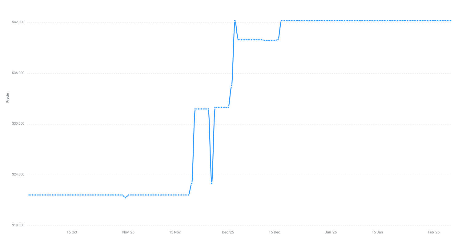 Evolución del precio de Kingston KCP432SS6-8 (1 x 8GB SO-DIMM DDR4-3200) (Gráfico elaborado por Solotodo)
