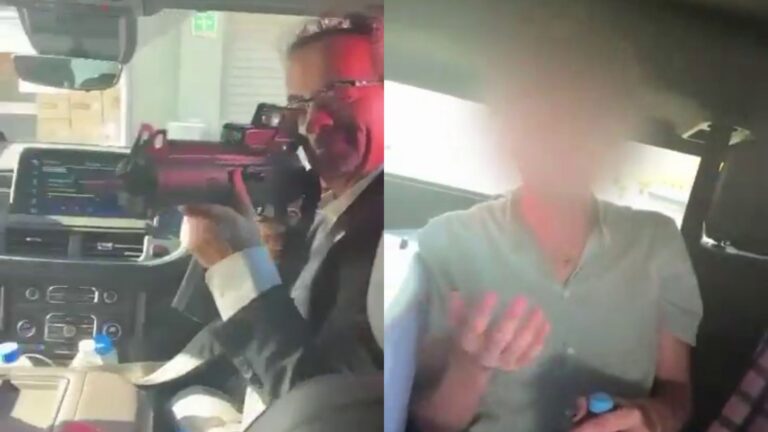 Benjamin aparece en un video apuntando un arma de alto calibre a uno de sus trabajadores, mientras se escuchan risas y burlas en el fondo.