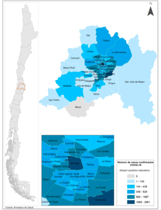 El Ministerio de Salud publicó el 19º informe epidemiológico con datos del COVID-19 en Chile al 17 de mayo. Este evidencia que la zona sur de Santiago es las más afectada por el virus.