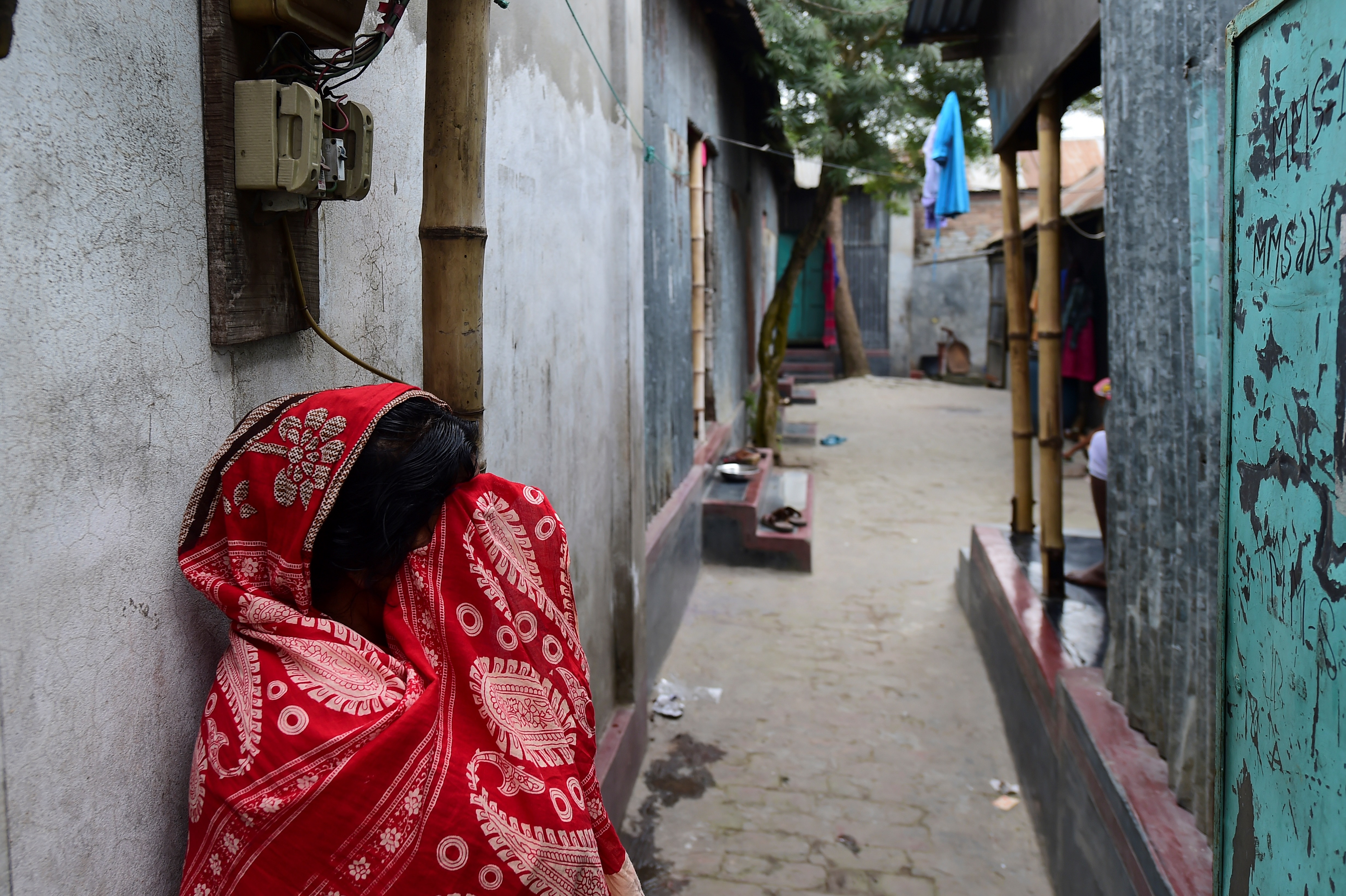 This photograph taken on February 8, 2020 shows a sex worker standing in front of a brothel in Daulatdia in Rajbari District, 110 kms (70 miles) west of Dhaka. – Daulatdia is one of about 12 legal but frowned upon brothel areas operating in the country. (Photo by Munir UZ ZAMAN / AFP) / TO GO WITH Bangladesh-prostitution-death-religion,FOCUS by Shafiqul ALAM (Photo by MUNIR UZ ZAMAN/AFP via Getty Images)