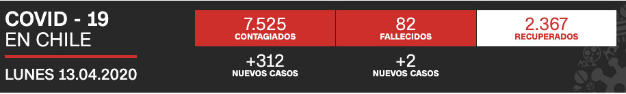 El último reporte entregado por el Ministerio de Salud, indicó que en las últimas 24 horas se registraron 312 casos nuevos de coronavirus, lo que da un total de 7.525 personas contagiadas en nuestro país.
