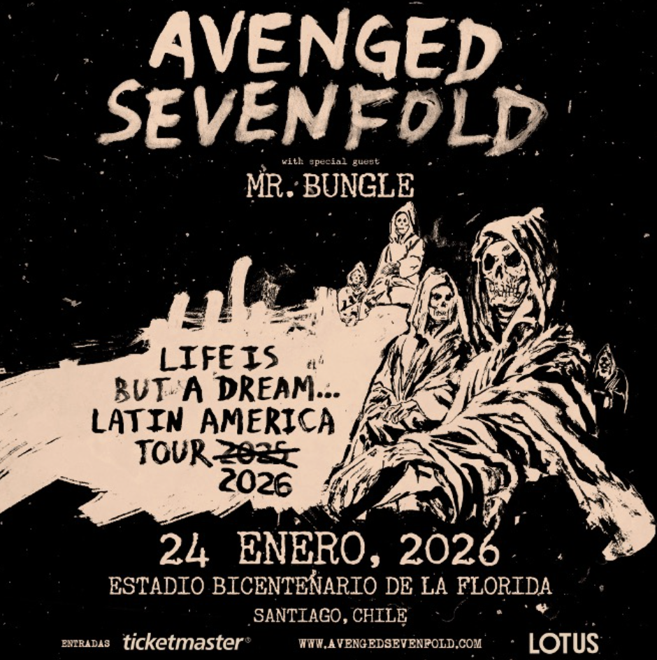 La banda estadounidense Avenged Sevenfold anunció una nueva fecha en Chile como parte de su tour Life Is But a Dream… Latin America.