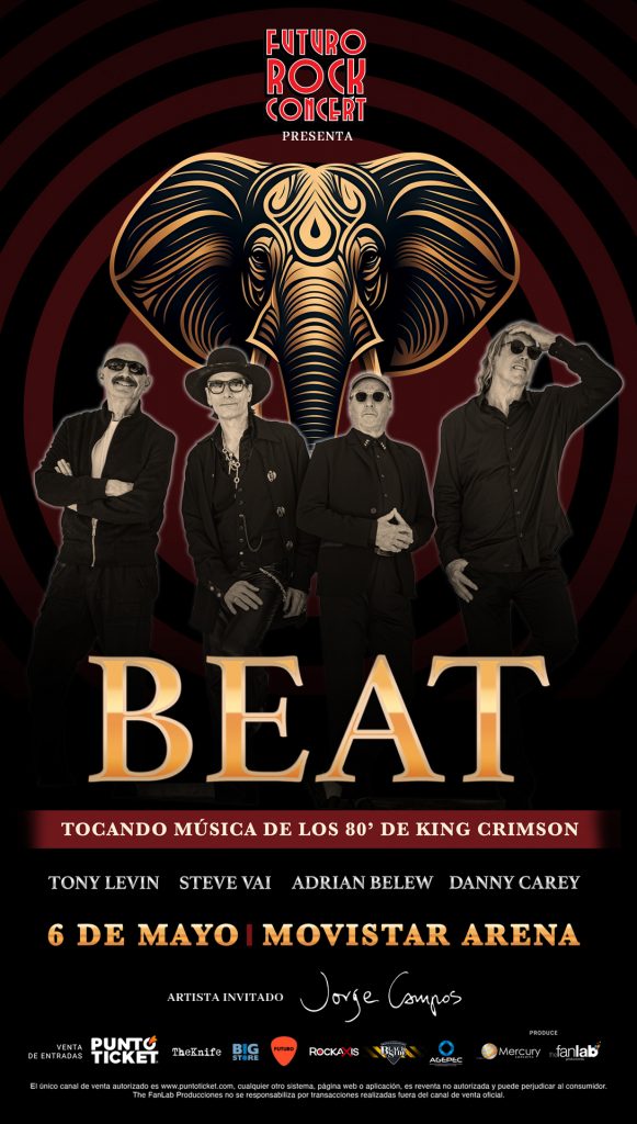 El próximo 6 de mayo, el Movistar Arena será escenario de un homenaje a la etapa ochentera de King Crimson, con la presentación en Chile de BEAT, una agrupación integrada por reconocidas figuras del rock progresivo internacional.