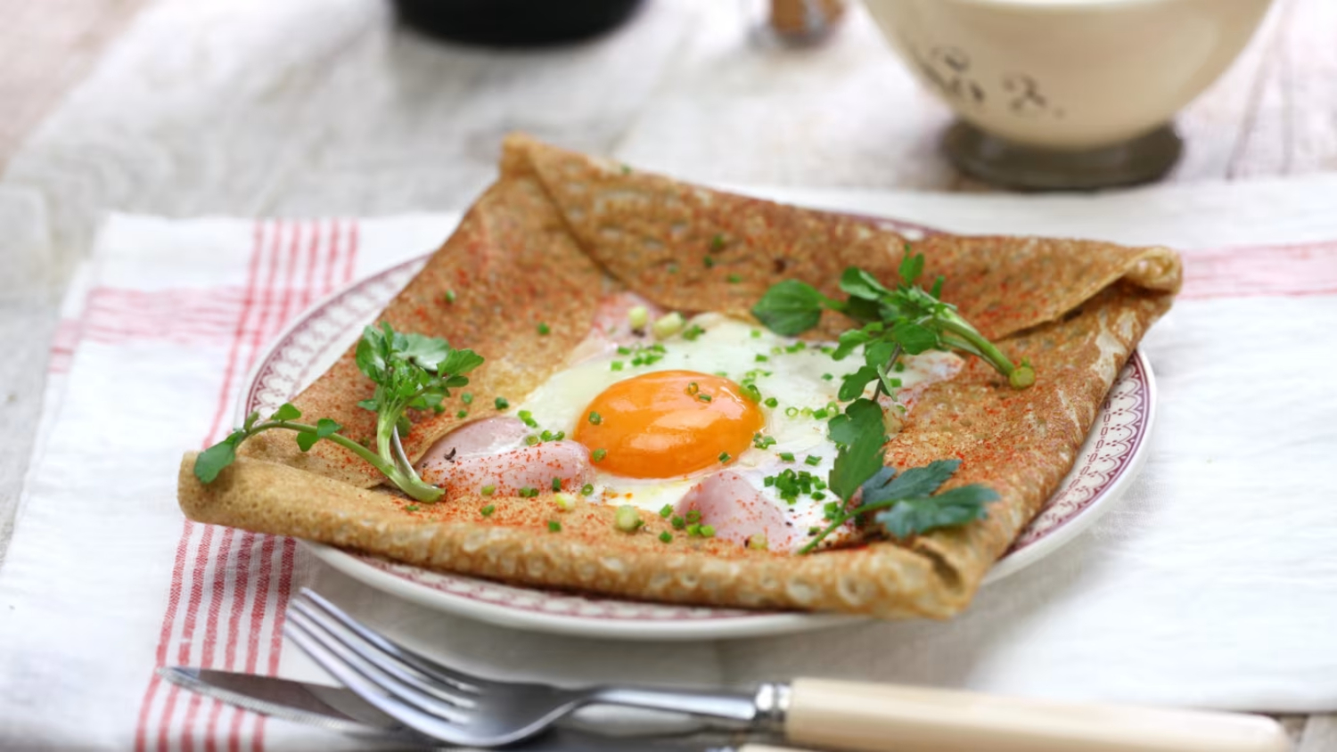 La crêpe, versátil como pocas, se come dulce o salada y alcanza su máxima expresión en las galettes de trigo sarraceno de Bretaña. La ensalada Niçoise celebra los productos frescos de la Riviera: tomates, aceitunas negras, alcaparras y judías verdes, con anchoas o atún opcionales. Su versión en sándwich se llama pan bagnat.