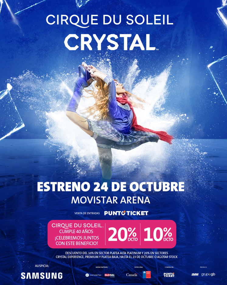 En 2024, Cirque du Soleil conmemora sus 40 años de trayectoria trayendo su innovador espectáculo CRYSTAL a Chile, una combinación de acrobacias circenses y patinaje sobre hielo.