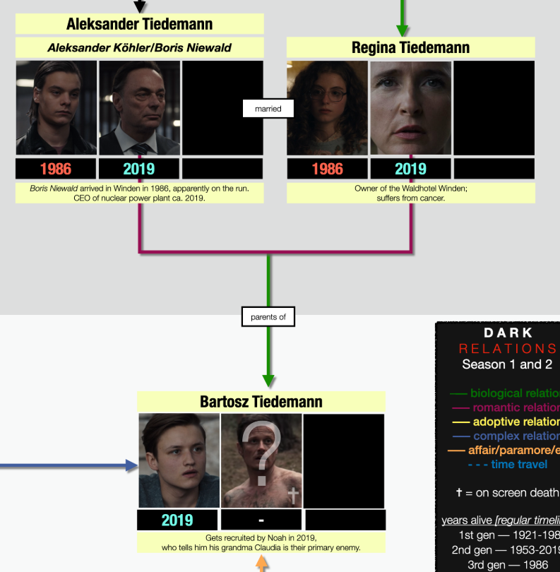 En 2019 ni Claudia ni Regina están al mando de la planta nuclear, lugar clave para serie, sino que Aleksander Tiedemann, esposo de Regina. Aleksander en realidad ha asegurado que su apellido es Köller, pero su identidad sería realmente Boris Niewald (casi como si hubieran mezclado Nielsen y Kanhwald).