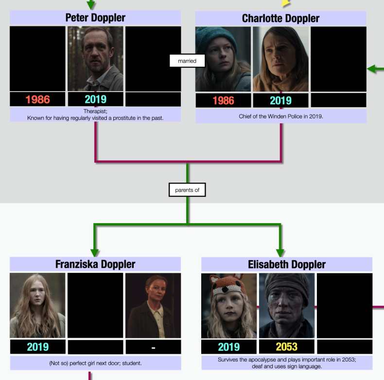 Con todo, ambos tienen a Franziska y Elisabeth. La primera tendría una relación con Magnus Nielsen, mientras que la segunda habría estado con Noah tras el apocalipsis, siendo Charlotte hija de ambos.
