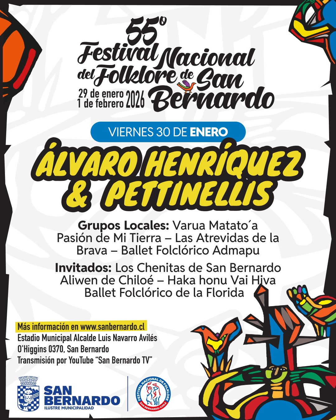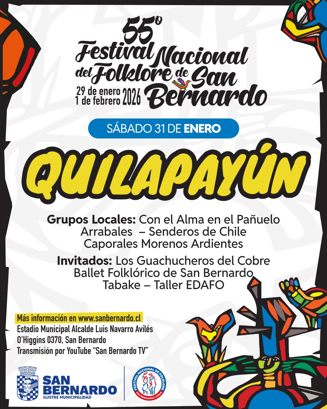 La actividad cultural se desarrollará entre el 29 de enero y el 1 de febrero de 2026 en el Estadio Municipal Alcalde Luis Navarro Avilés, ubicado en la comuna de San Bernardo.