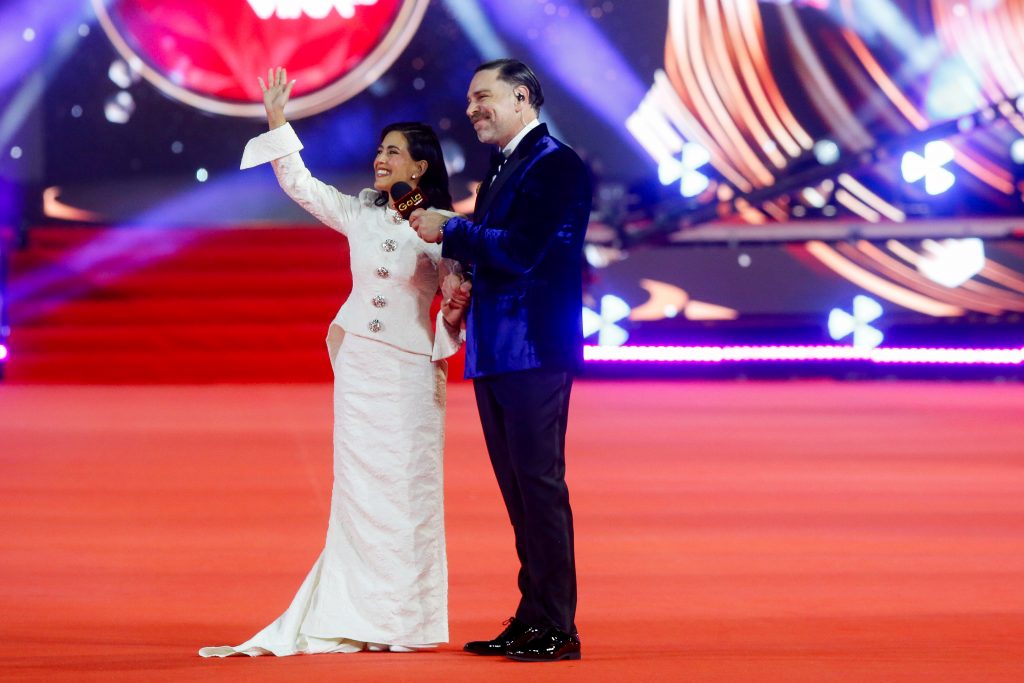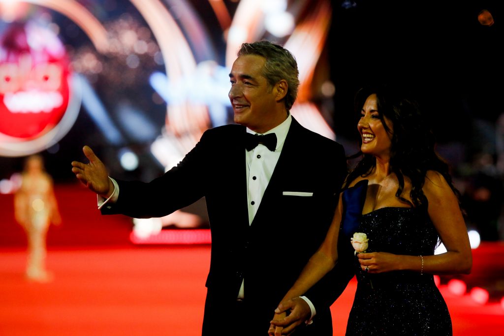 Carmen Gloria arroyo y Bernardo Borgeat caminan por la alfombra roja de la Gala del festival de Viña del Mar 2026,