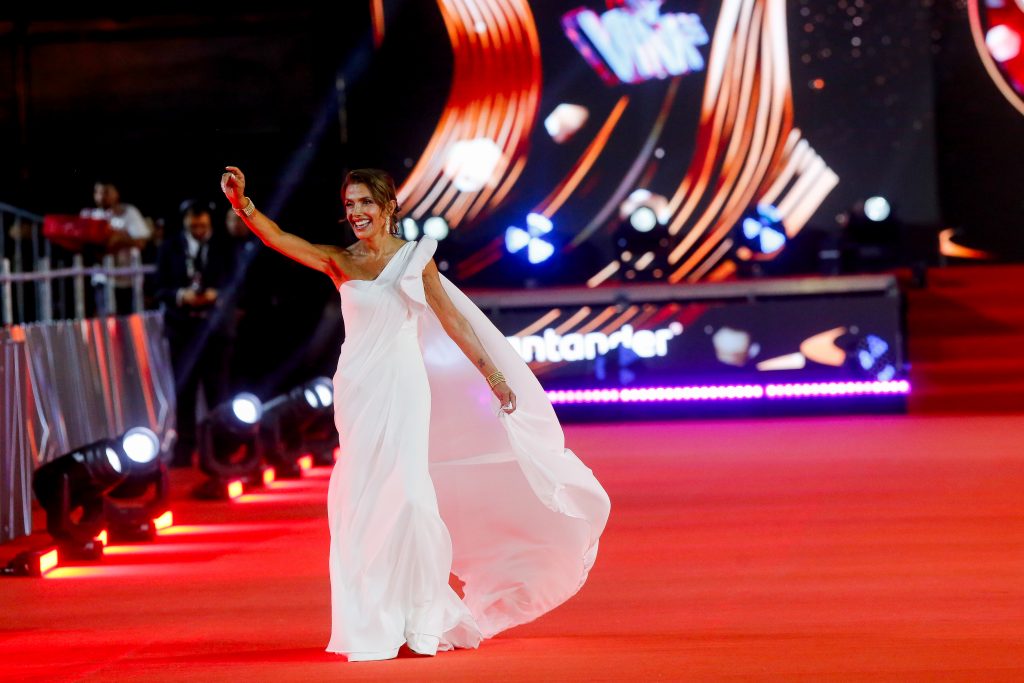 La actriz Carolina Arregui camina por la alfombra roja de la Gala del festival de Viña del Mar 2026,