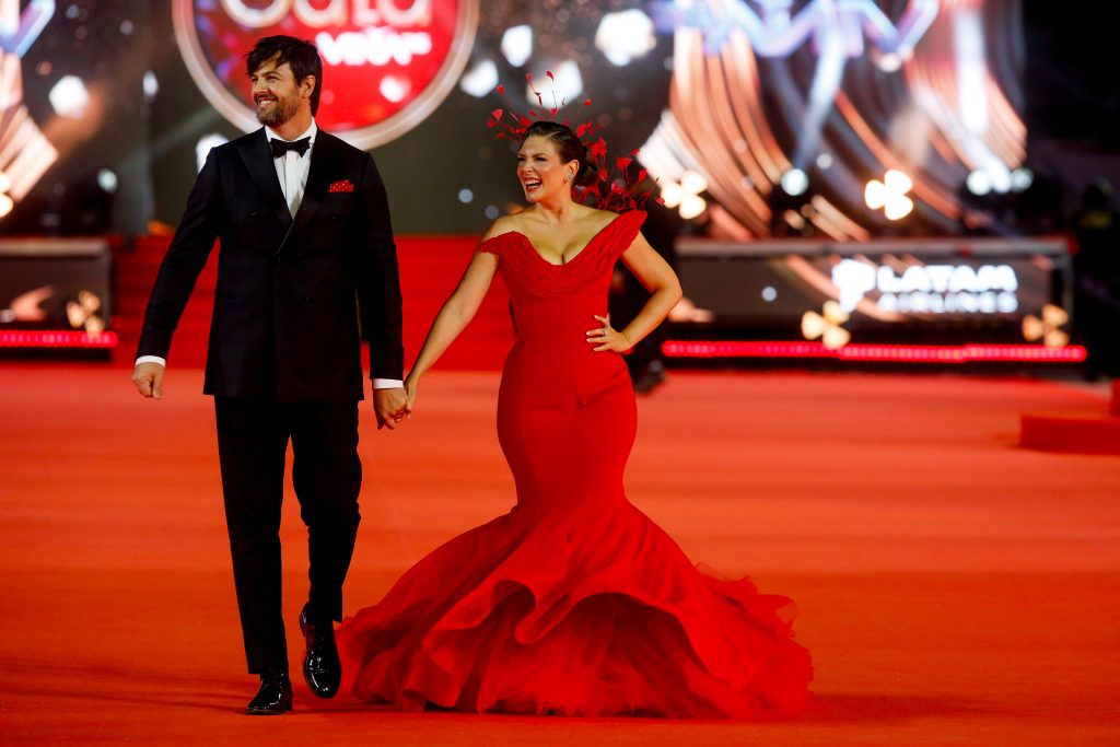 Marlen Olivari y Luciano Marocchino camina por la alfombra roja de la Gala del festival de Viña del Mar 2026,