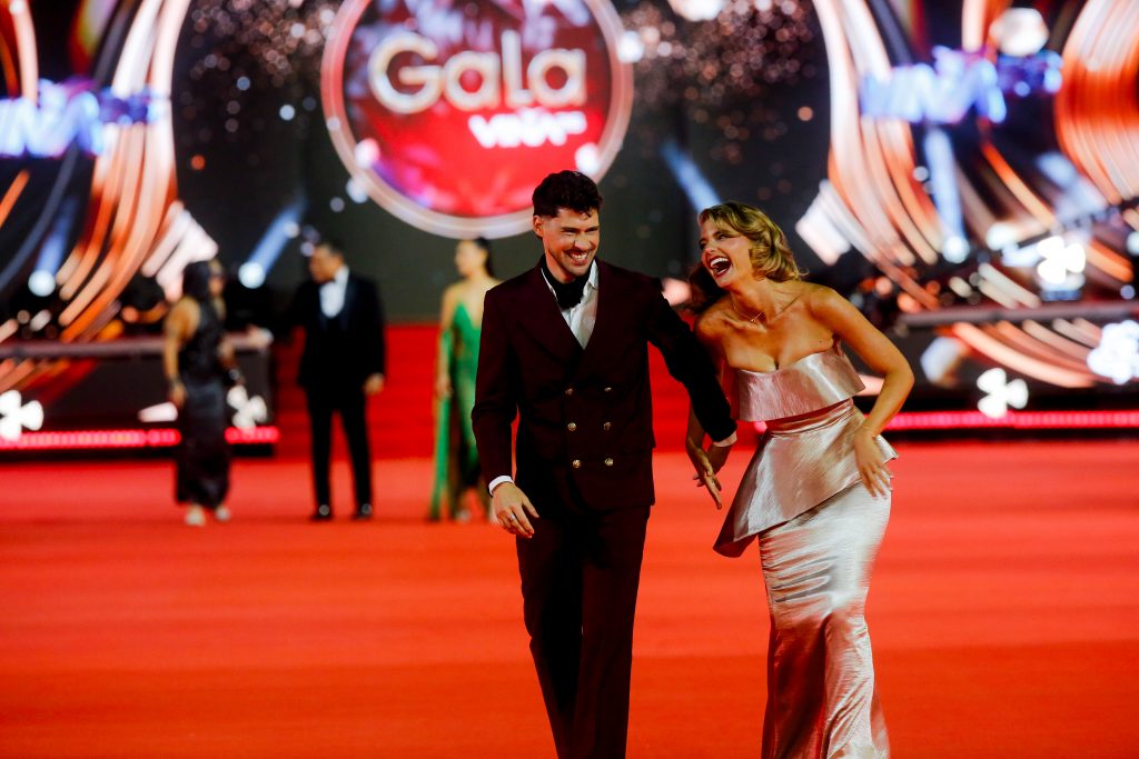 Pamela Leiva y Daniel Fuenzalida camina por la alfombra roja de la Gala del festival de Viña del Mar 2026,