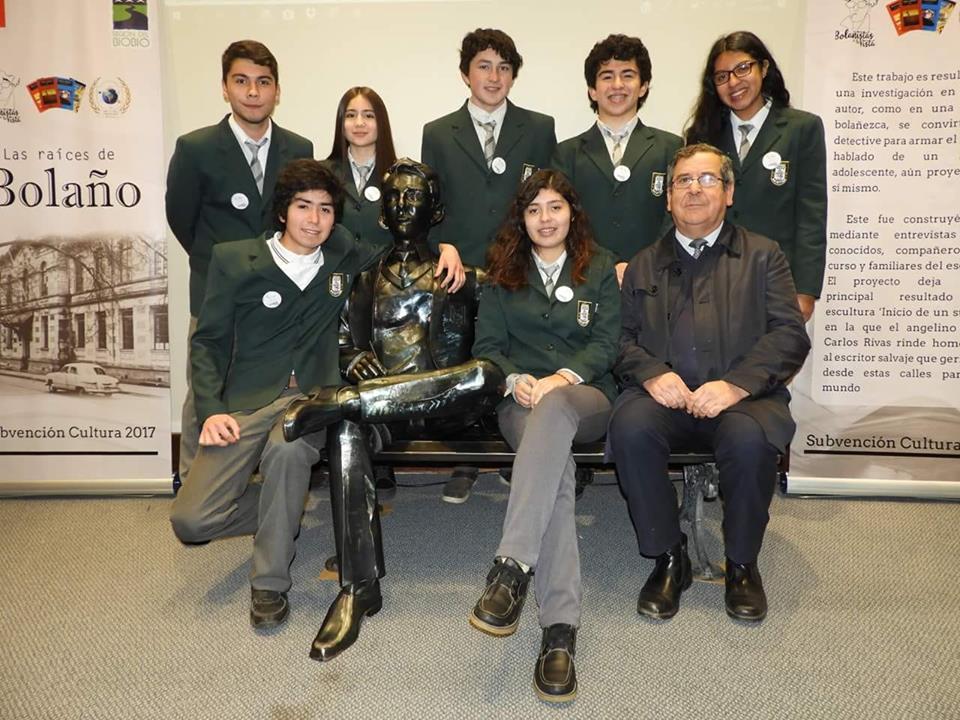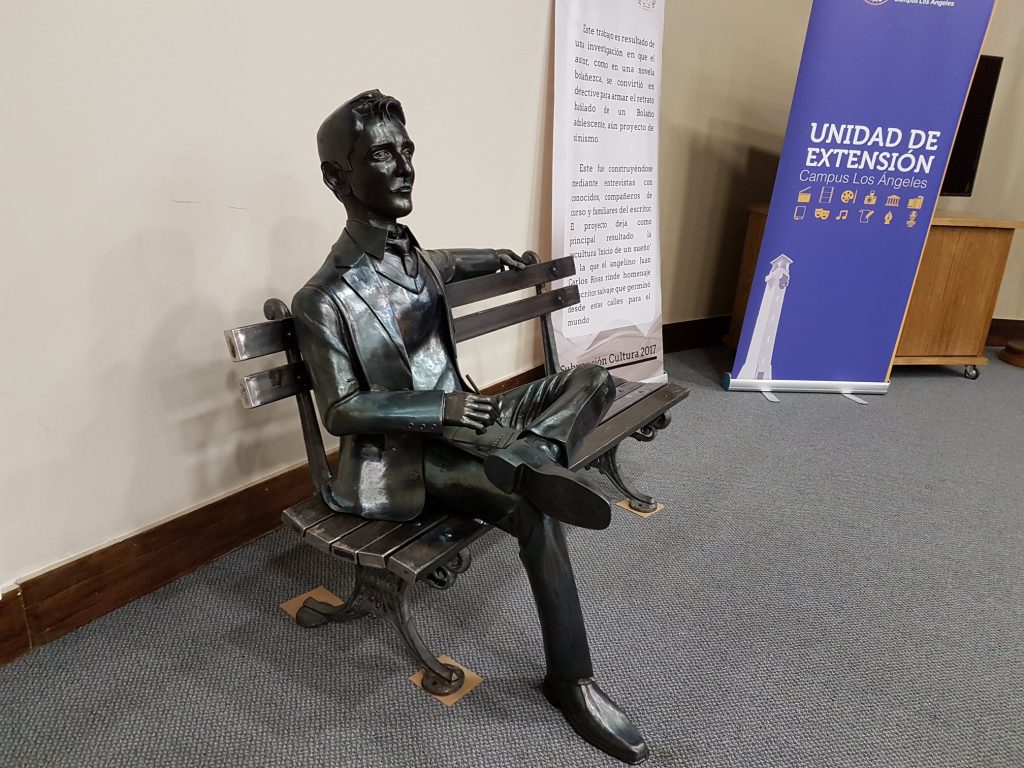 Y es que en el campus de la U. de Concepción de dicha ciudad, el artista Juan Carlos Rivas Vásquez instaló una escultura del escritor hecha en acero de 4 milímetros de espesor y de cerca de 250 kilos, la cual fue trabajada en el marco de un proyecto artístico llamado “Raíces de Bolaño” y que contó con entrevistas a compañeros, familiares, vecinos y amigos de Bolaño. De hecho, algunos familiares del autor posaron junto a la figura.