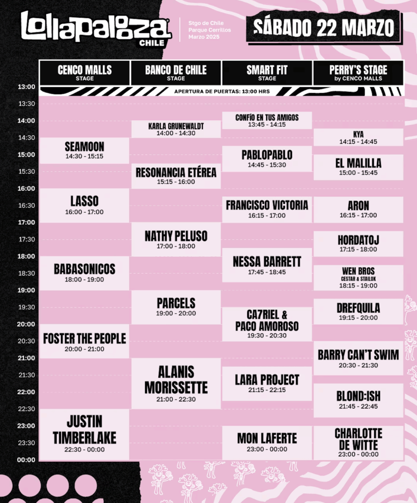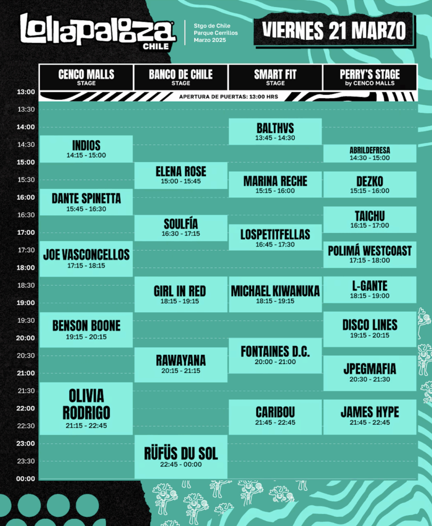 La organización de Lollapalooza Chile 2025 dio a conocer este mediodía la programación completa del festival de música más esperado de la capital.