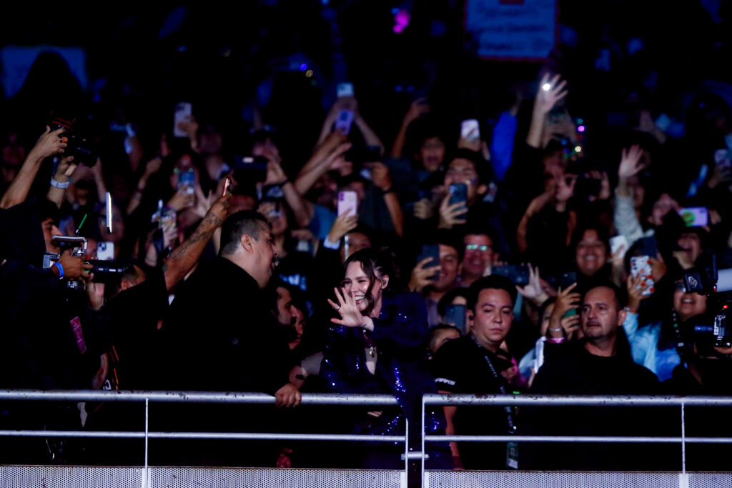Uno de los momentos más impactantes de la noche llegó segundos después. Joy apareció cantando desde el pasillo de la galería al ritmo de Si Te Vas, rodeada de guardias, pero envuelta en el cariño del público. Una cercanía que dialogó con lo que se había reportado minutos antes del show: que Jesse incluso se tomó fotografías con asistentes antes de subir al escenario.