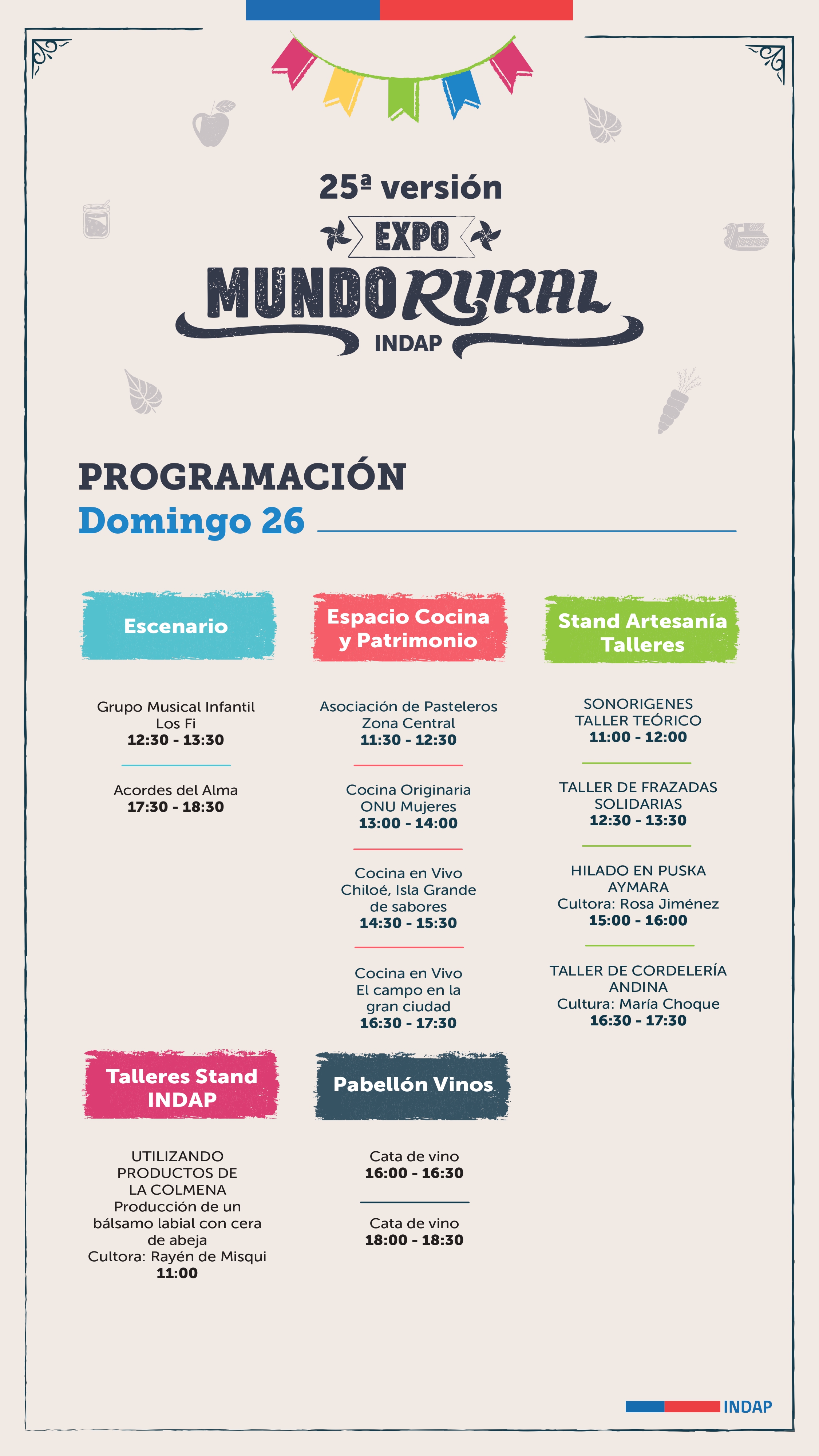 La 25ª versión de la fiesta del campo en la ciudad se realizará entre el 23 y el 26 de octubre en el Parque Estadio Nacional, comuna de Ñuñoa. La entrada es gratuita (debe descargarse en Ticketplus).