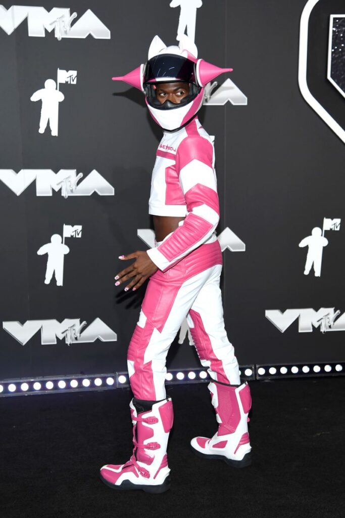 El atrevido atuendo rosado de Lil Nas X dejó a los usuarios de las redes sociales preguntándose si estaba canalizando su Power Ranger interior. Noam Galai/Getty Images vía CNN Newsource