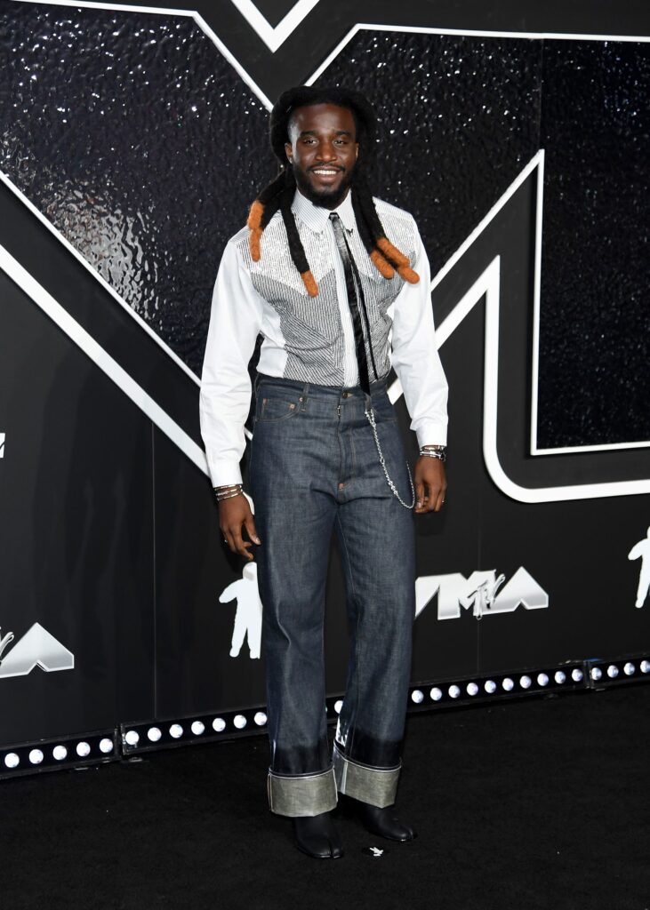 Shaboozey, nominado a Mejor Artista Revelación, lució un look denim. Noam Galai/Getty Images vía CNN Newsource