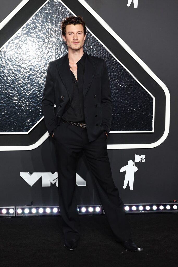 Shawn Mendes llegó antes de su actuación con un esmoquin Dolce & Gabbana de lana con pantalones acampanados y camisa de seda. Jamie McCarthy/WireImage/Getty Images vía CNN Newsource