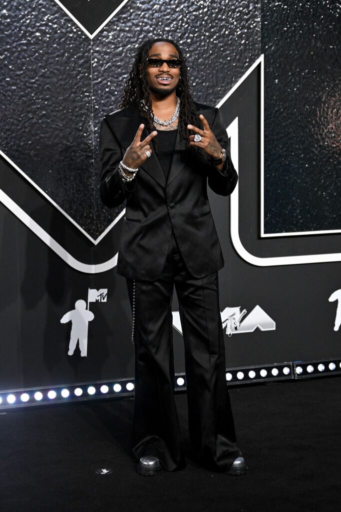 El rapero Quavo fue una de las muchas estrellas que llegó vestido completamente de negro. Gilbert Flores/Billboard/Getty Images vía CNN Newsource