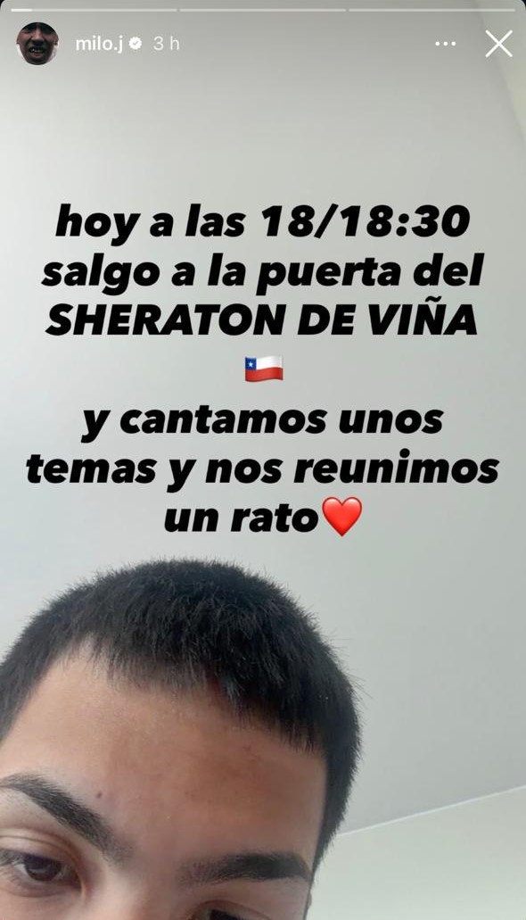 La tarde de este jueves, Milo J realizaró un pequeño concierto para sus fánaticos en la entrada del Hotel Sheraton, en donde se encuentra hospedado en el marco del Festival de la Canción de Viña del Mar.