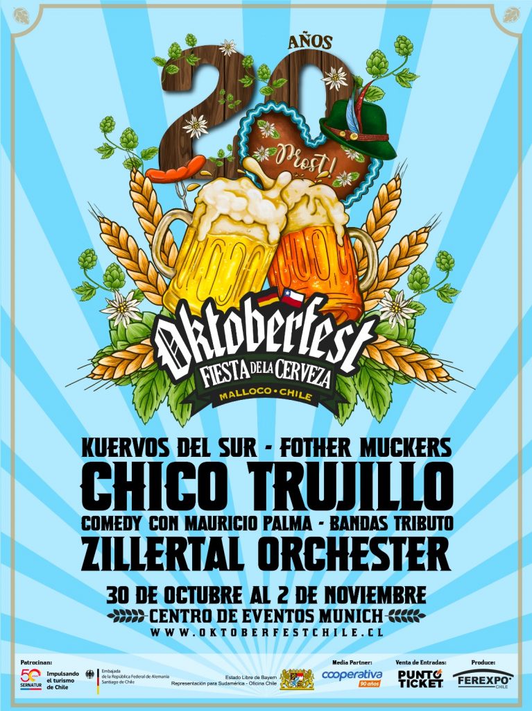 El Oktoberfest Chile, considerado el festival cervecero más grande del país, realizará su edición número 20 entre el jueves 30 de octubre y el domingo 2 de noviembre en el Centro de Eventos Múnich, en Malloco.