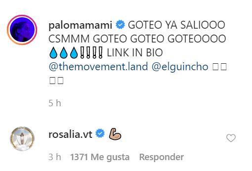 En redes sociales, específicamente en su cuenta de Instagram, Paloma Mami compartió con sus seguidores el lanzamiento del tema, publicación que recibió hasta un saludo de Rosalía con directo emoji que refleja la fuerza del nuevo sencillo.