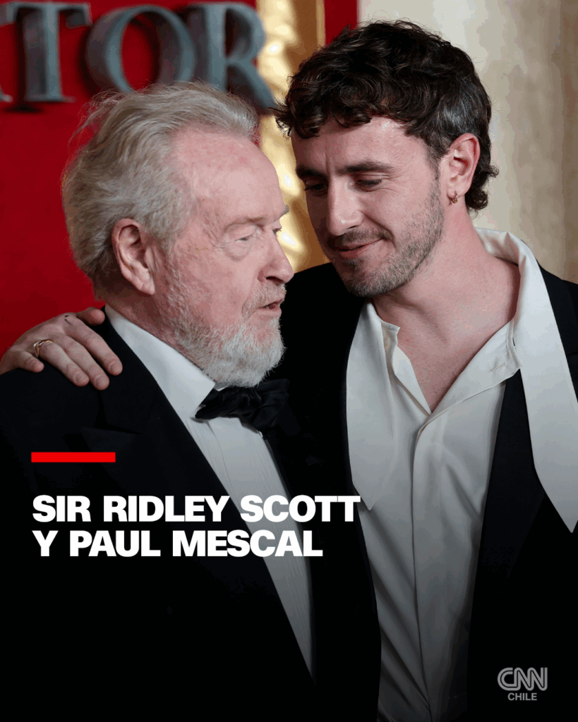 Paul Mescal, por su parte, posó en compañía del director del icónico filme original y la respectiva segunda parte, Ridley Scott.