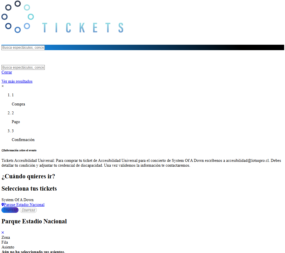 El sitio para comprar las entradas de #SOAD en CHILE, no soporto, literal system of a down.