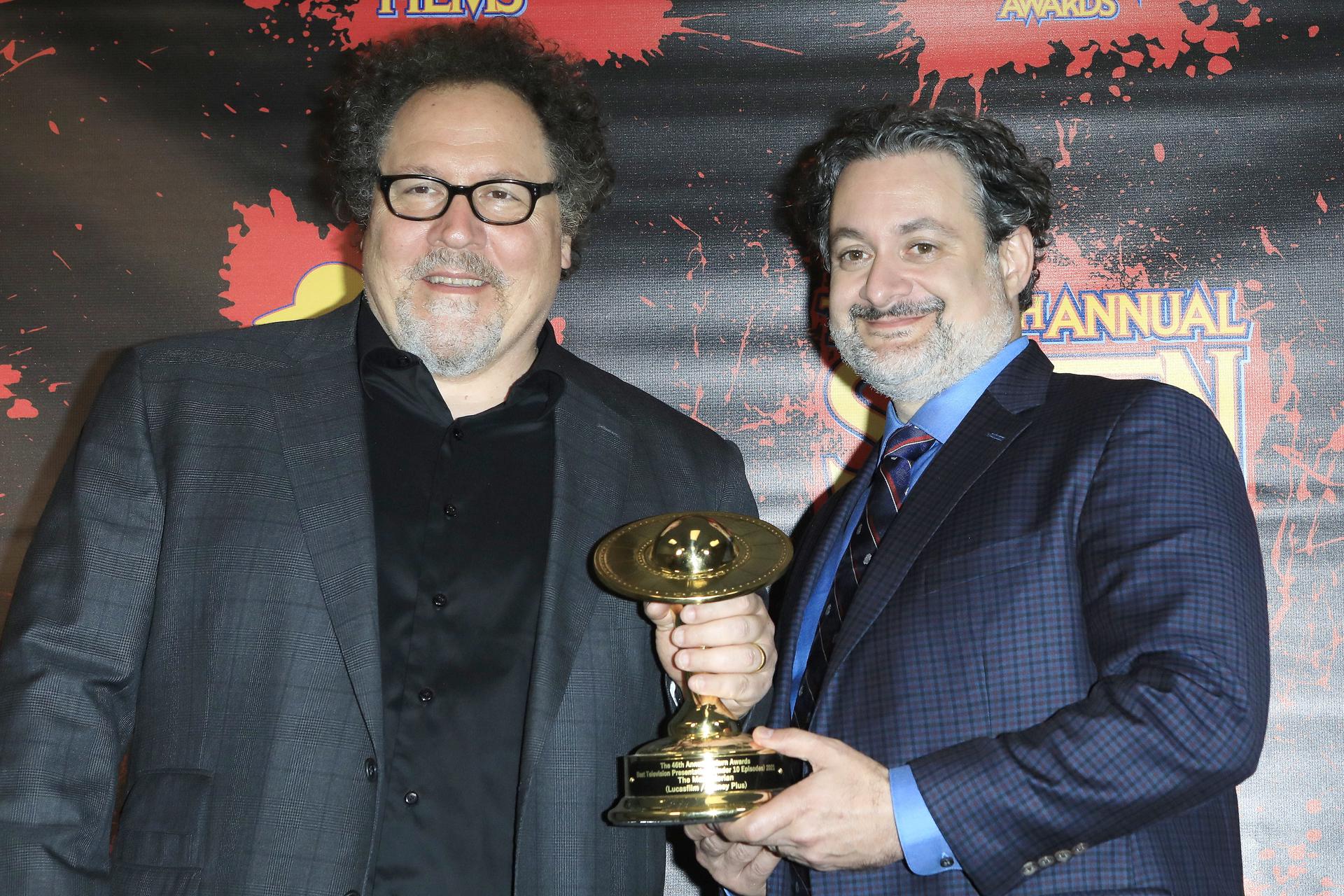 Burbank (Estados Unidos), 26/10/2021.- Jon Favreau y Dave Filoni en la 46.ª edición de los Premios Saturn, celebrada en el Centro de Convenciones del Hotel Marriott Burbank Airport de Los Ángeles, Burbank, California, Estados Unidos, el 26 de octubre de 2021. EFE/EPA/NINA PROMMER