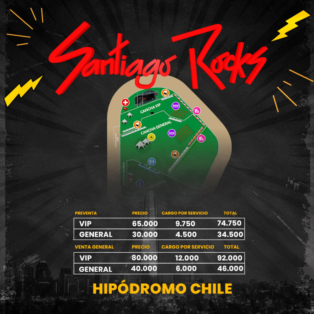 Venta de entradas: Disponibles a través de Punto Ticket. Los asistentes pueden aprovechar la preventa con precios reducidos; a $30 mil para la entrada general y $65 mil para la VIP. Tras la preventa, los precios subirán a $40 mil y $80 mil respectivamente.