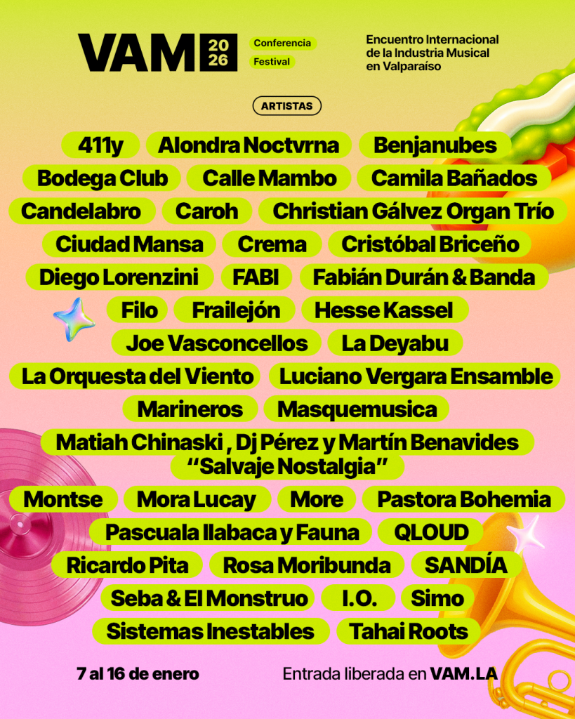 Este miércoles 7 de enero comienza en la Región de Valparaíso una nueva edición de VAM 2026, el Encuentro Internacional de la Industria Musical, instancia que se extenderá por cuatro días (7 al 10 de enero) con actividades orientadas tanto a público general como a profesionales del sector.
