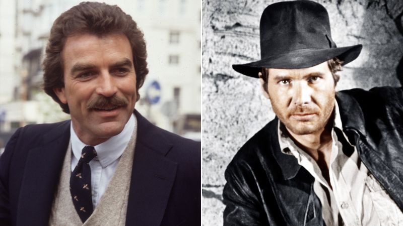 (De izquierda a derecha) Tom Selleck y Harrison Ford, este último como Indiana Jones | Getty Images, Shutterstock vía CNN Newsource