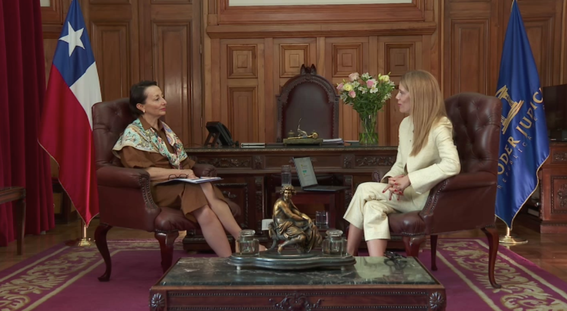 Gloria Ana Chevesich Ruiz, presidenta de la Corte Suprema, junto a Mónica Rincón, periodista y conductora de CNN Prime.