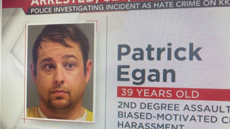 Egan fue arrestado bajo sospecha de delitos motivados por prejuicios, agresión en segundo grado y acoso. Está programado que comparezca ante el tribunal el jueves para saber si los fiscales han presentado cargos formales en su contra.
