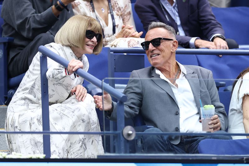 Anna Wintour habla con Bruce Springsteen. Crédito: Charly Triballeau/AFP/Getty Images.
