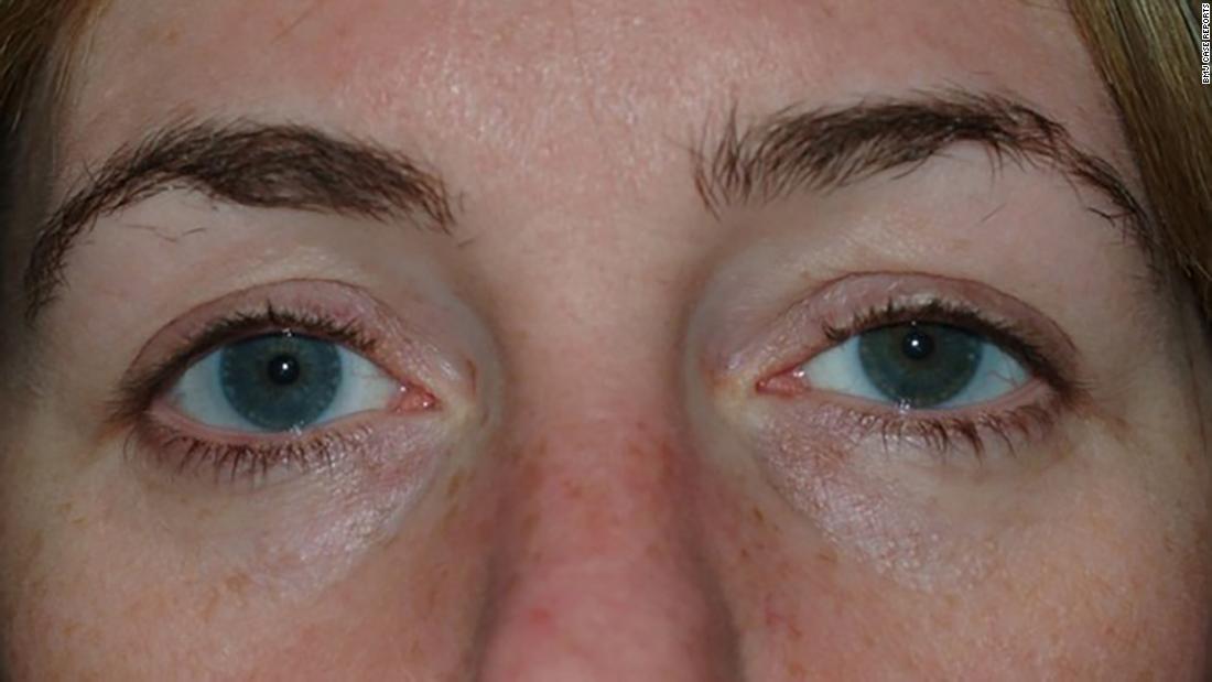 Empezó como un bulto del porte de un poroto, justo abajo de su párpado izquierdo. Luego el quiste creció durante un periodo de seis meses hasta que fue visible en una resonancia magnética. Además de la hinchazón y el posterior dolor al tocarlo, su párpado comenzó a caerse.