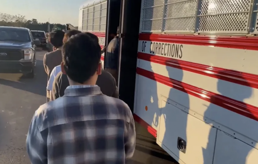 Durante la detención de cientos de personas en una planta de Hyundai en Ellabell (Georgia) por parte del ICE, varias personas suben a un autobús. Servicio de Inmigración y Control de Aduanas de Estados Unidos vía CNN Newsource