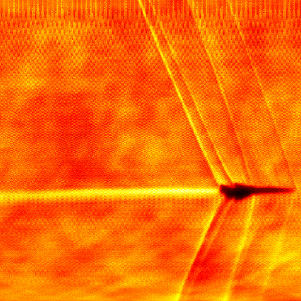 Los equipos de la NASA en Tierra utilizaron la fotografía Schlieren para capturar las ondas de choque alrededor del avión de demostración XB-1 de Boom Supersonic mientras avanzaba por el aire.
