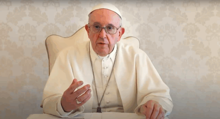 “Le pido a Dios para que cada uno pueda aportar su pequeño grano de arena, su pequeño gesto de amor, por más pequeño que sea el amor siempre es grande”, dijo el papa en el mensaje de video en español con subtítulos en inglés.