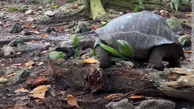 Los científicos registraron el momento en video cuando una tortuga gigante de las Islas Seychelles, que antes se pensaba que era vegetariana, atacó y se comió un polluelo en lo que dicen que es la primera documentación de caza deliberada en cualquier especie de tortuga salvaje.