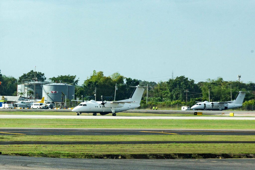 Fotografía del 18 de diciembre de 2025 que muestra aviones militares estadounidenses en la pista del Aeropuerto Internacional de Piarco (Trinidad y Tobago). EFE/Andrea De Silva.