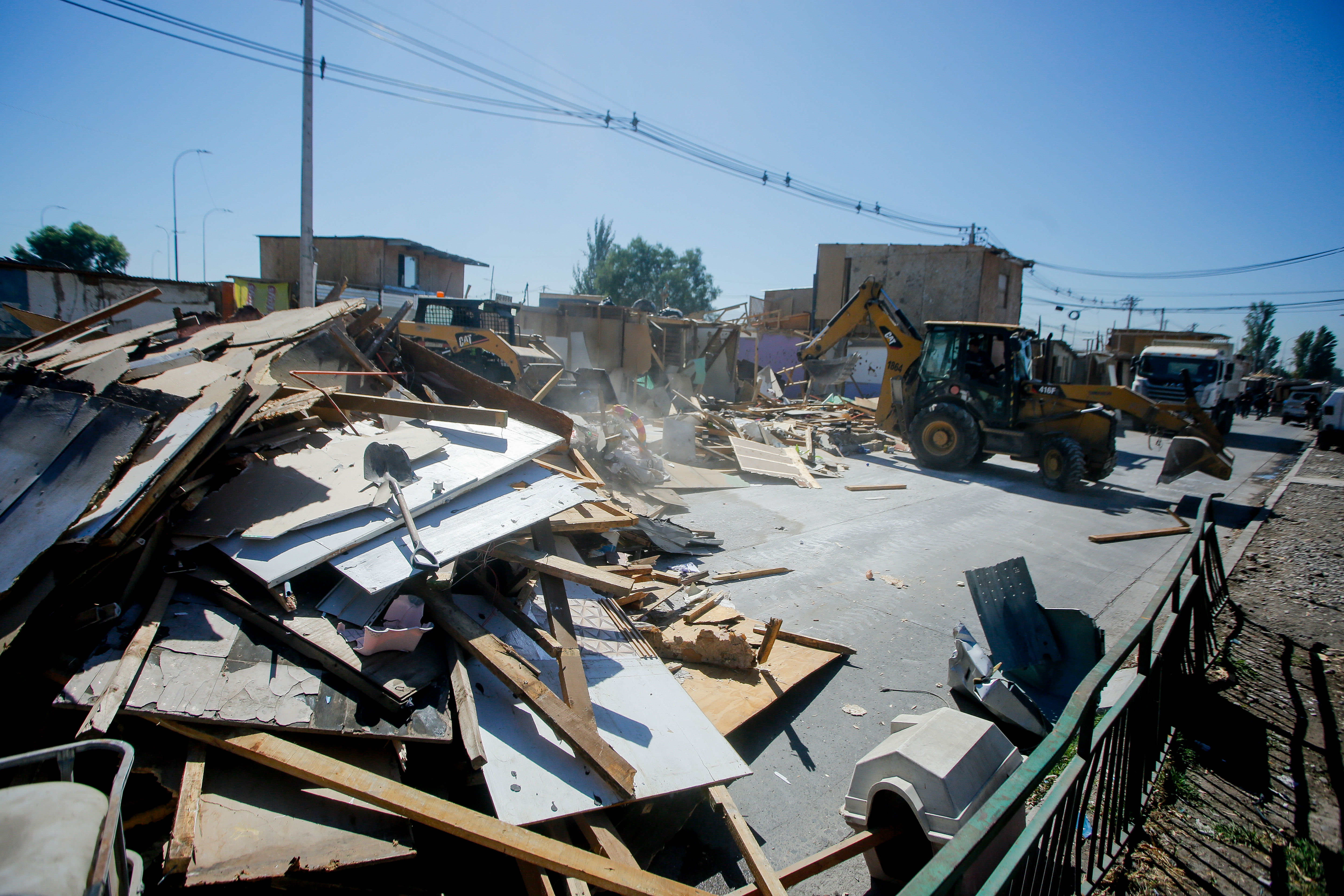 Vista de la toma Santa Marta, durante el nuevo desalojo y demolición del lugar, en la comuna de Maipú. FOTO: HANS SCOTT/AGENCIAUNO