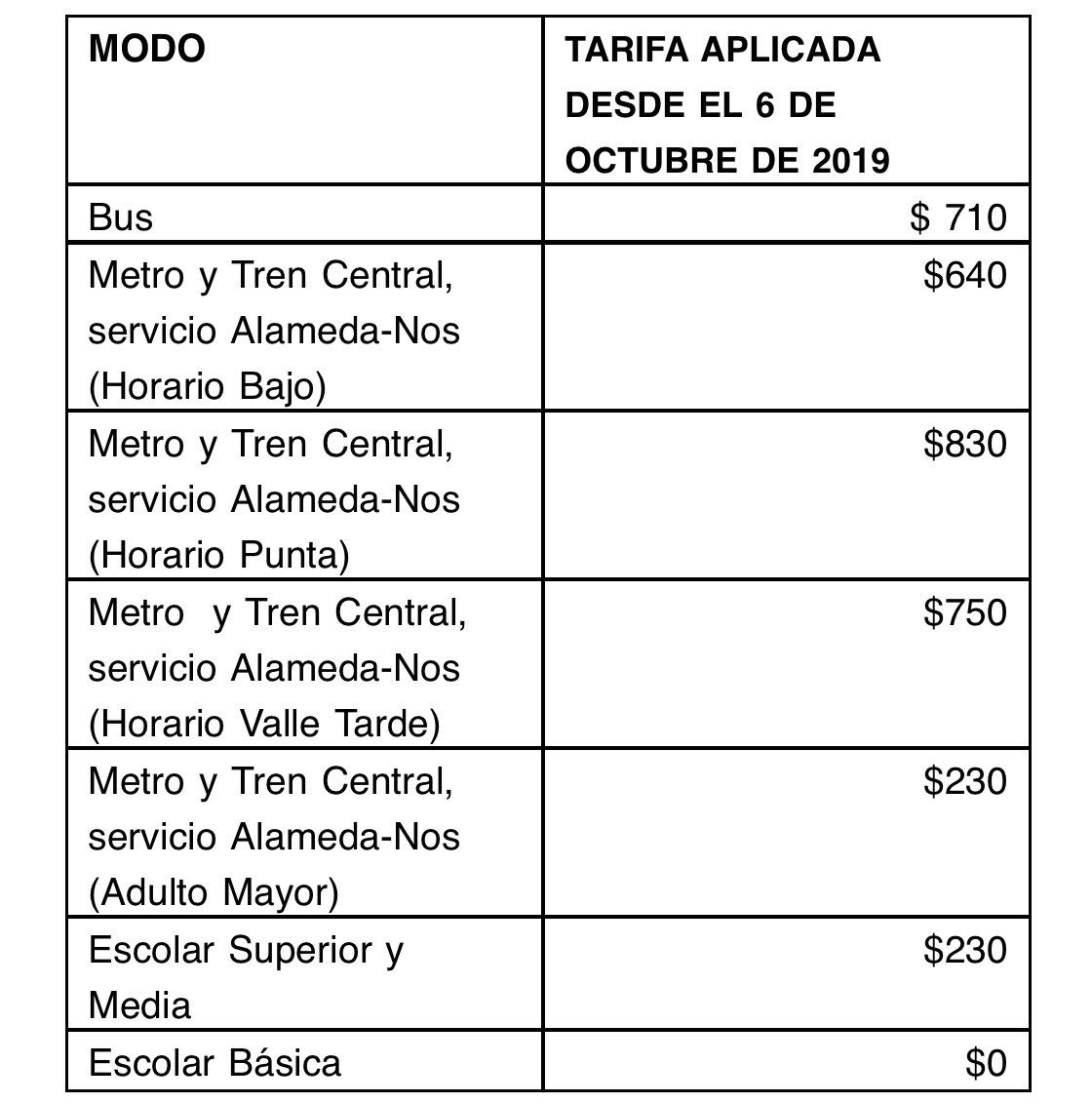 De esta manera, los precio de Metro quedarán en $640 en horario bajo, $750 en horario valle y $830 en horario punta. Mientras tanto, el pasaje en buses aumentará $10 pesos y llega a los $710.