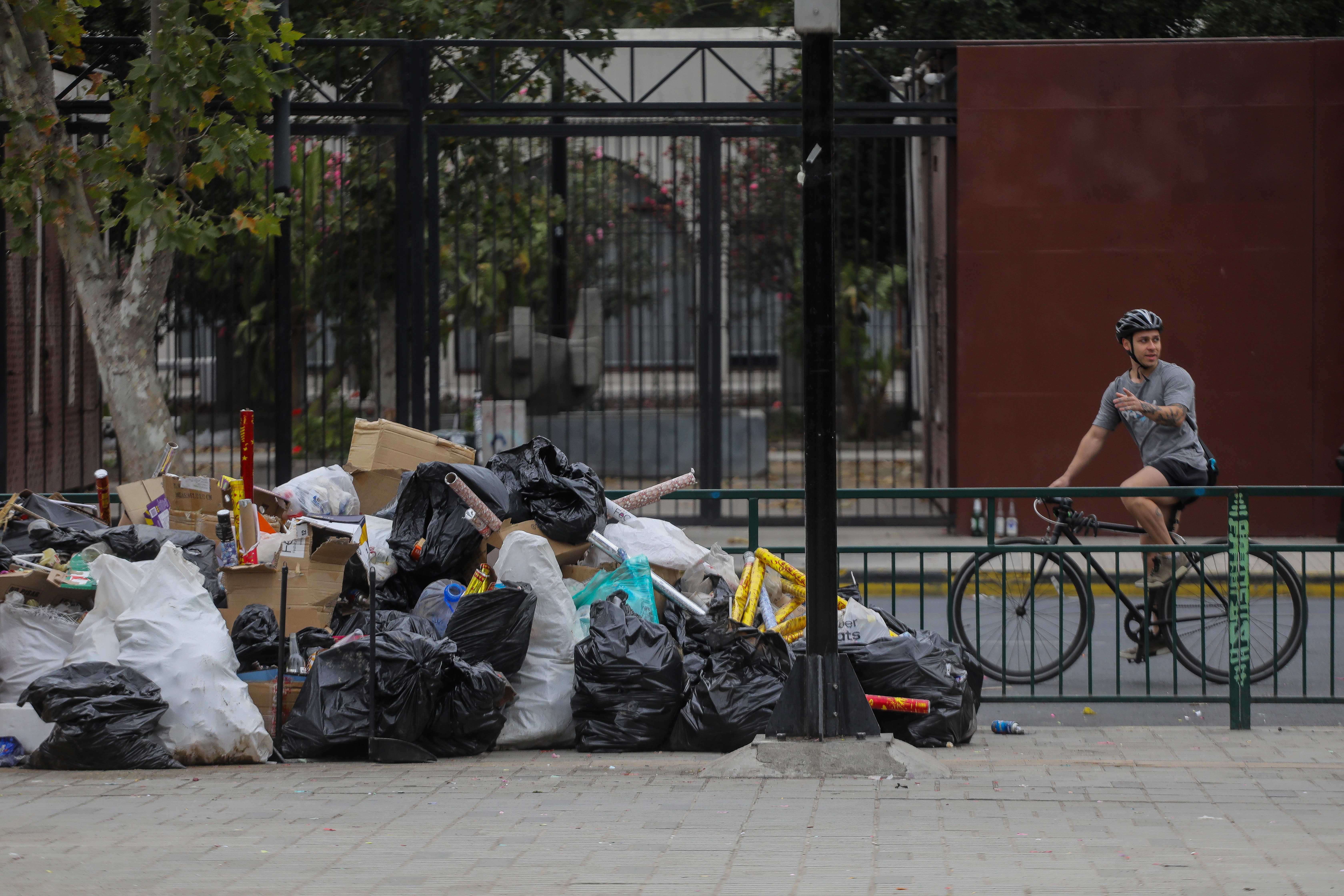 El parque del centro de Santiago quedó cubierto de botellas y desechos luego de la masiva concentración del sábado por la noche, mientras vecinos realizaron cientos de reportes por incivilidades a través de plataformas ciudadanas.