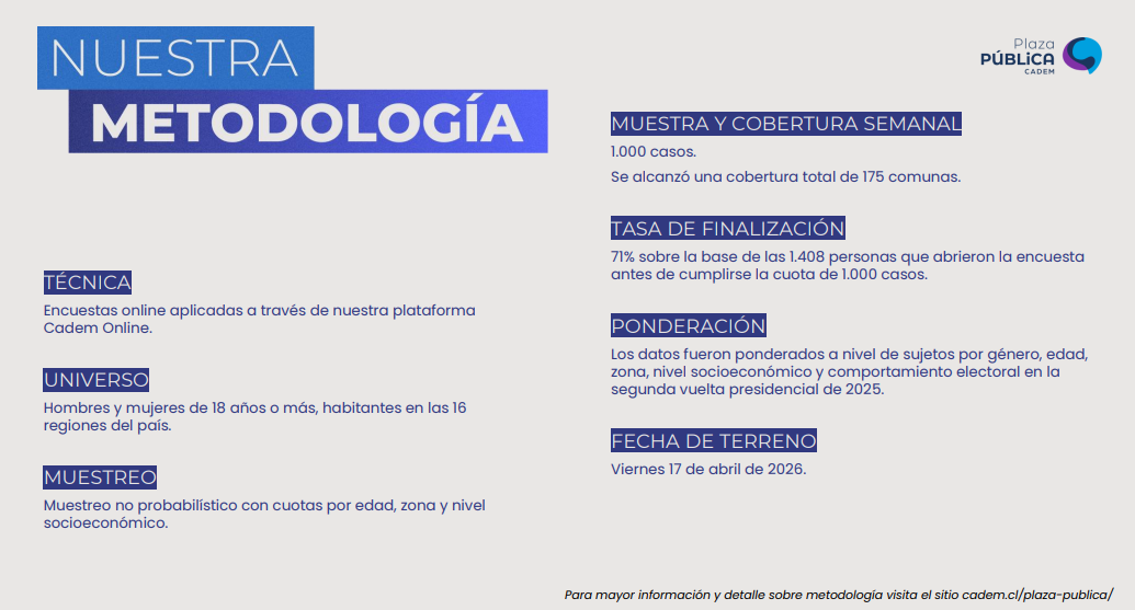 En una nueva edición de la encuesta Cadem Plaza Pública se abordaron las reacciones al proyecto de Reconstrucción Nacional anunciado por el presidente José Antonio Kast en su primera cadena nacional.