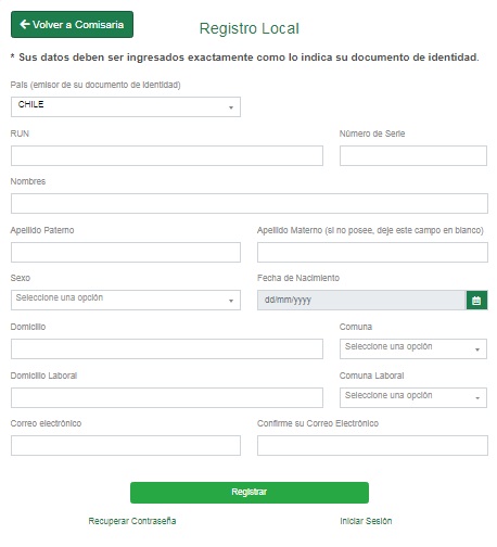 Para registrarse en la Comisaría Virtual, primero se debe ingresar al sitio web www.comisariavirtual.cl, donde se desplegará una barra en rojo con las palabras “¡Regístrate aquí!”., a la cual se le debe dar clic.