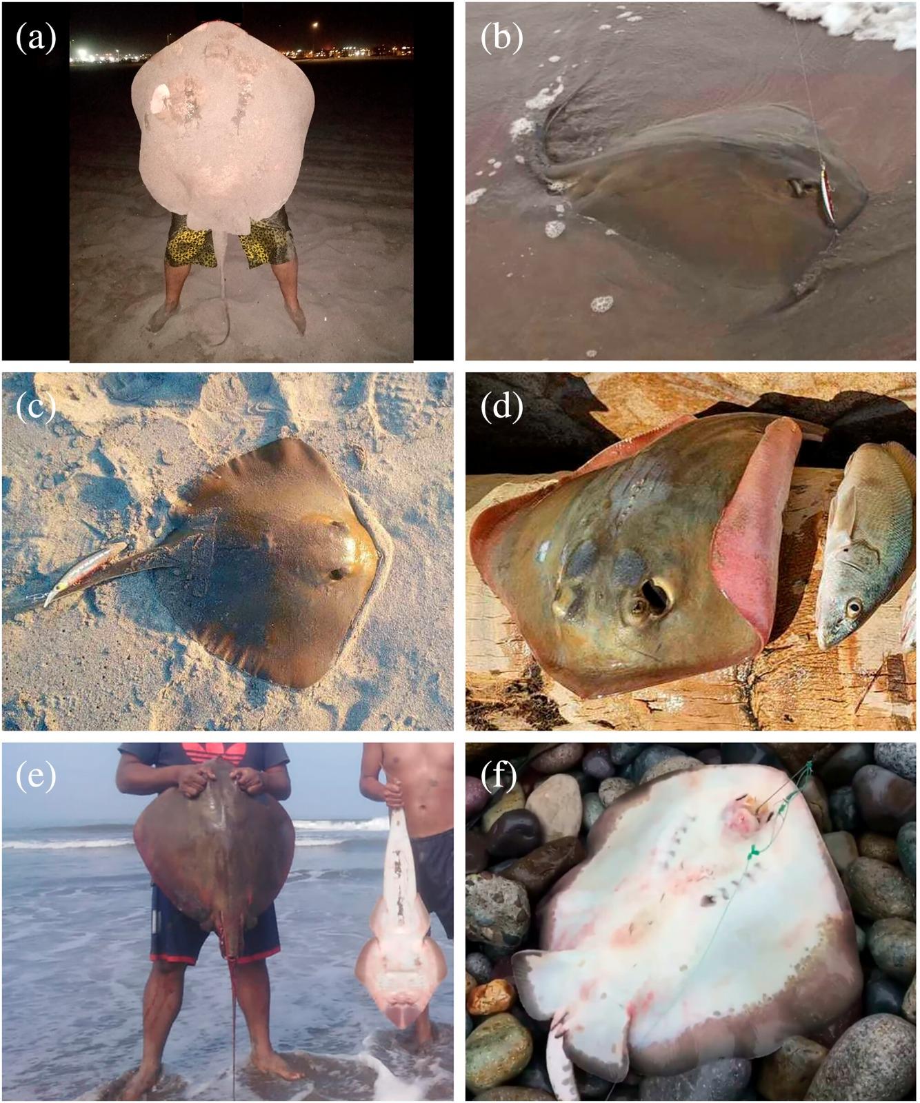 Registros representativos de avistamientos de Hypanus dipterurus realizados por pescadores recreativos desde la costa del Pacífico suroriental.